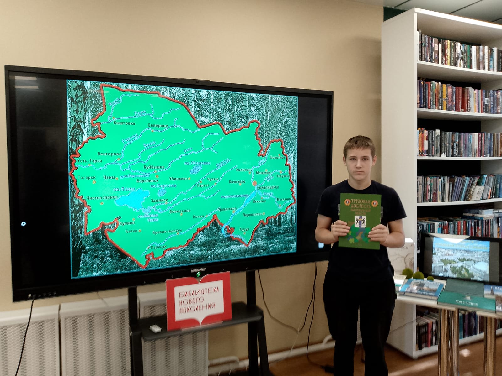Книжная выставка «Новосибирск – главный город Сибири» – увлекательное путешествие по всем городам и районам нашей области и городу Новосибирску. Она познакомила участников игры с природой и историей края, с его замечательными людьми.