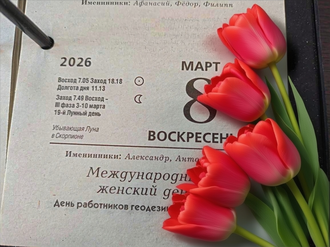 В 2026 году праздник приходится на воскресенье – это значит, что выходной переносится на понедельник 9 марта.