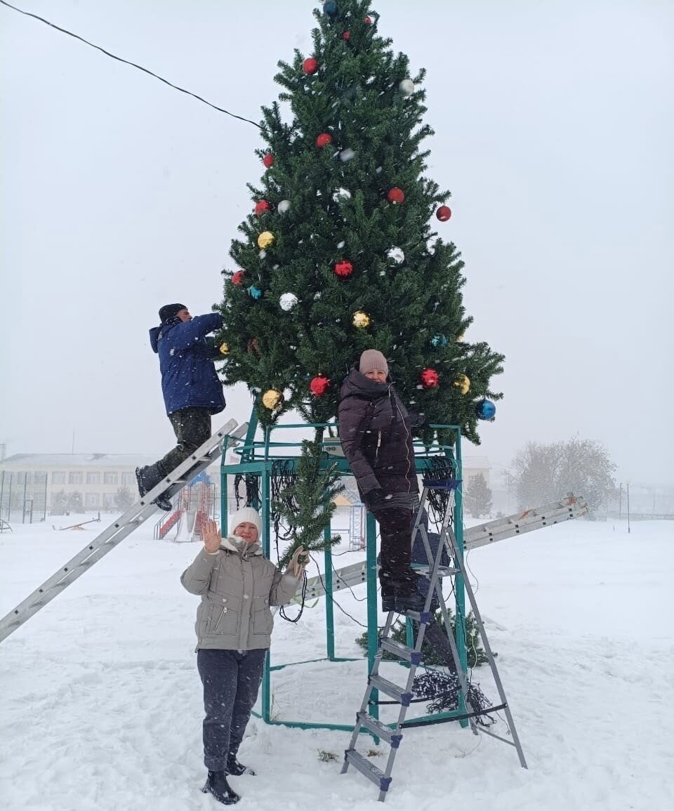На центральной площади села Кожурла уже установлена и сияет всеми красками главная красавица — новогодняя елка.