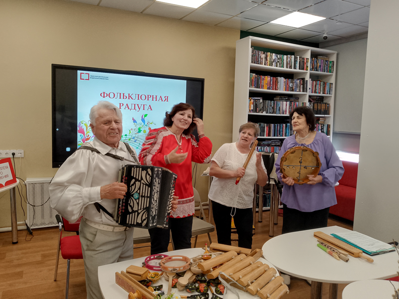 Далее Людмила Ильинична показала мастер-класс по игре на шумовых инструментах. В этот день в библиотеке было интересно и познавательно. Все вместе разгадывали загадки, пели песни, звучало много стихов.