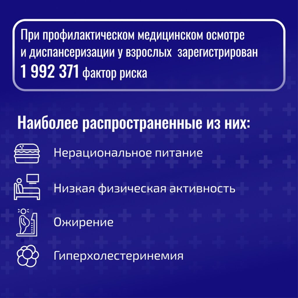 Кроме того, в регионе в рамках нацпроекта работают десять центров здоровья – здесь выявляют не только риски, но и предриски развития заболеваний, а также разрабатывают индивидуальные планы здорового образа жизни для каждого пациента.