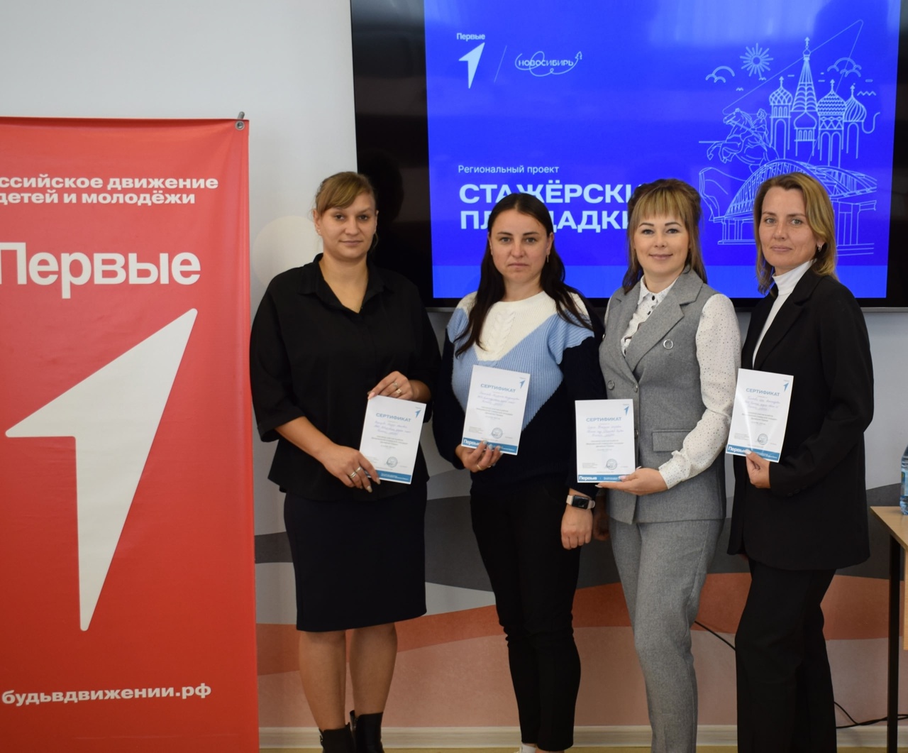 От Убинского района на площадке присутствовали Наталья Седых, председатель местного отделения Движения Первых, Анастасия Рыхторова, МКОУ “Александроневская средняя школа”, Ольга Платова, МКОУ “Убинская средняя школа №2”, Жанна Воронцова, МКОУ “Новоселовская средняя школа”.