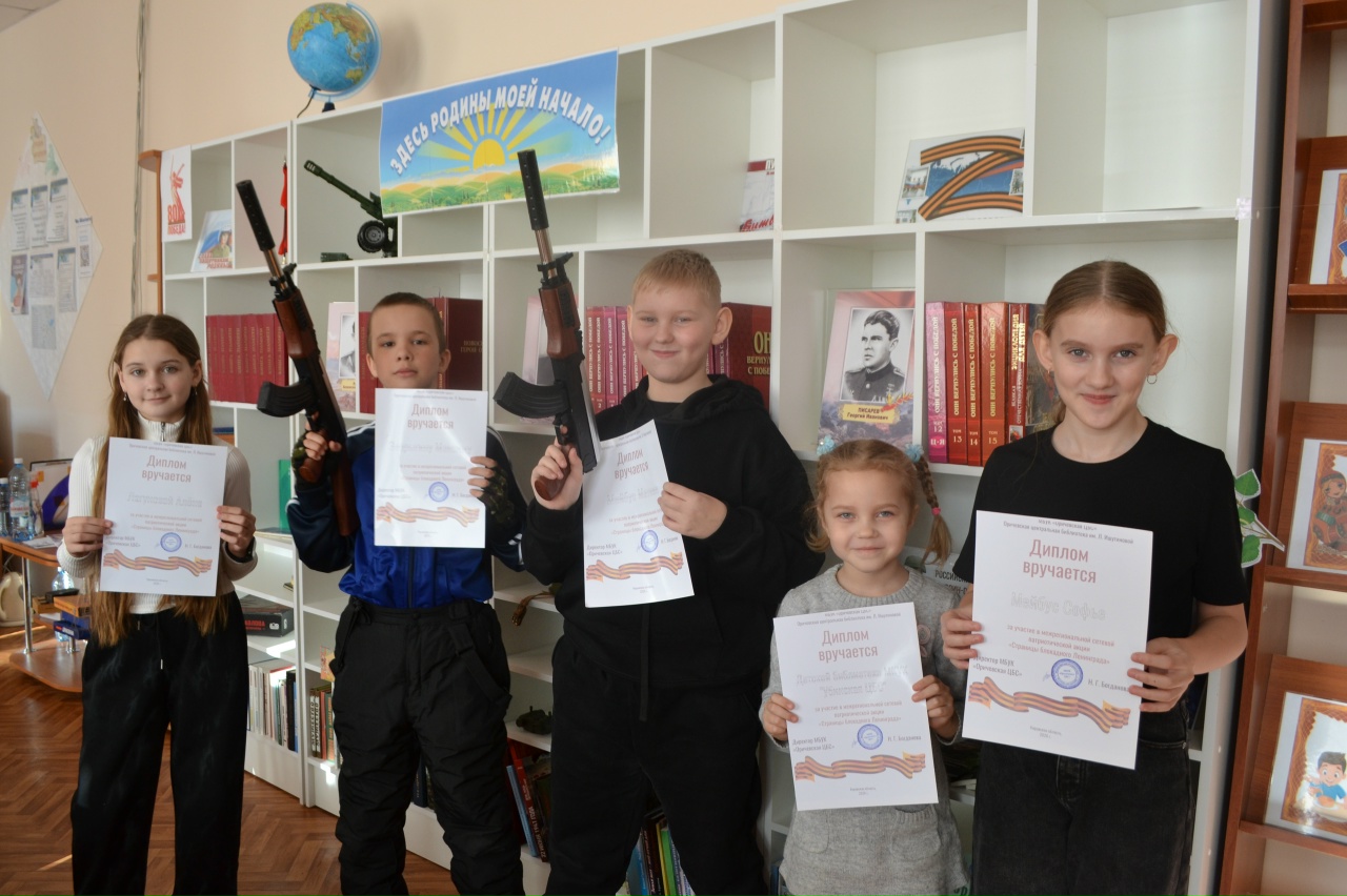 Библиотекарь Детско библиотеки Ирина Лагунова торжественно вручила дипломы ребятам, принявшим активное участие в межрегиональной сетевой патриотической акции «Страницы блокадного Ленинграда».