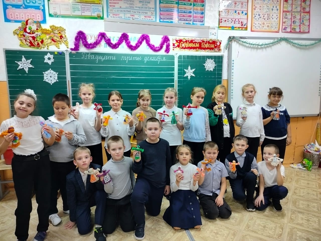 В Убинской средней школе №1 дети месте с мамами — Мазаловой И. В., Ковалёвой В. М. и классными руководителями мастерили Хранителей для воинов СВО.