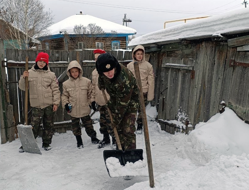Пока зима продолжает испытывать нас на прочность, засыпая все вокруг, парни и девчонки из военно-патриотического клуба «Альтаир» не стали ждать чуда. Они взяли лопаты и отправились на помощь к Александру Гончарову, ветерану Афганской войны. Человек он крепкий, старой закалки, но даже ему в одиночку не под силу справиться с таким количеством снега, что навалило на крышу и во двор.