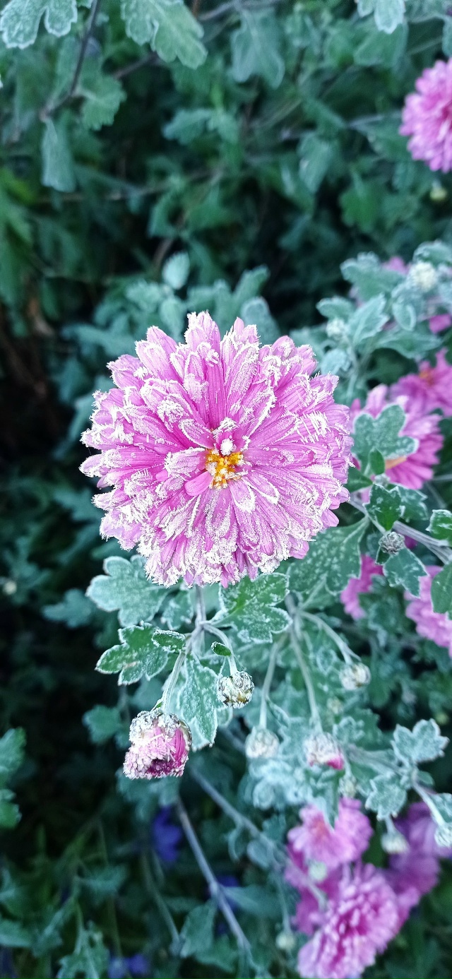 В ночь на 29 сентября на наш район обрушился первый осенний морозец. Несмотря на его холодную силу, утром распустившиеся цветы выглядели великолепно, словно застывшие в хрустальном стекле, сияли яркие астры, пышные георгины и нежные бархатцы.