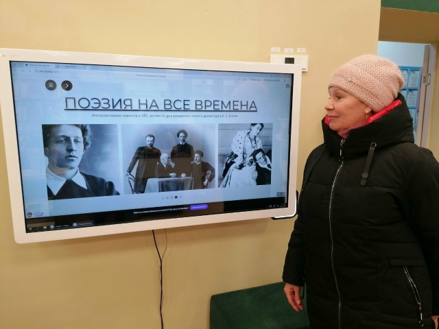 Посетители библиотеки смогли погрузиться в мир творчества и жизни Александра Блока благодаря интерактивной доске. На ней была представлена подробная биография и богатое наследие поэта.