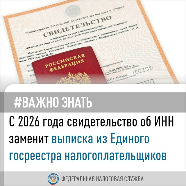 Межрайонная ИФНС Nº18 по Новосибирской области информирует, что с 1 января 2026 года свидетельство о постановке на учет в налоговом органе упраздняется.