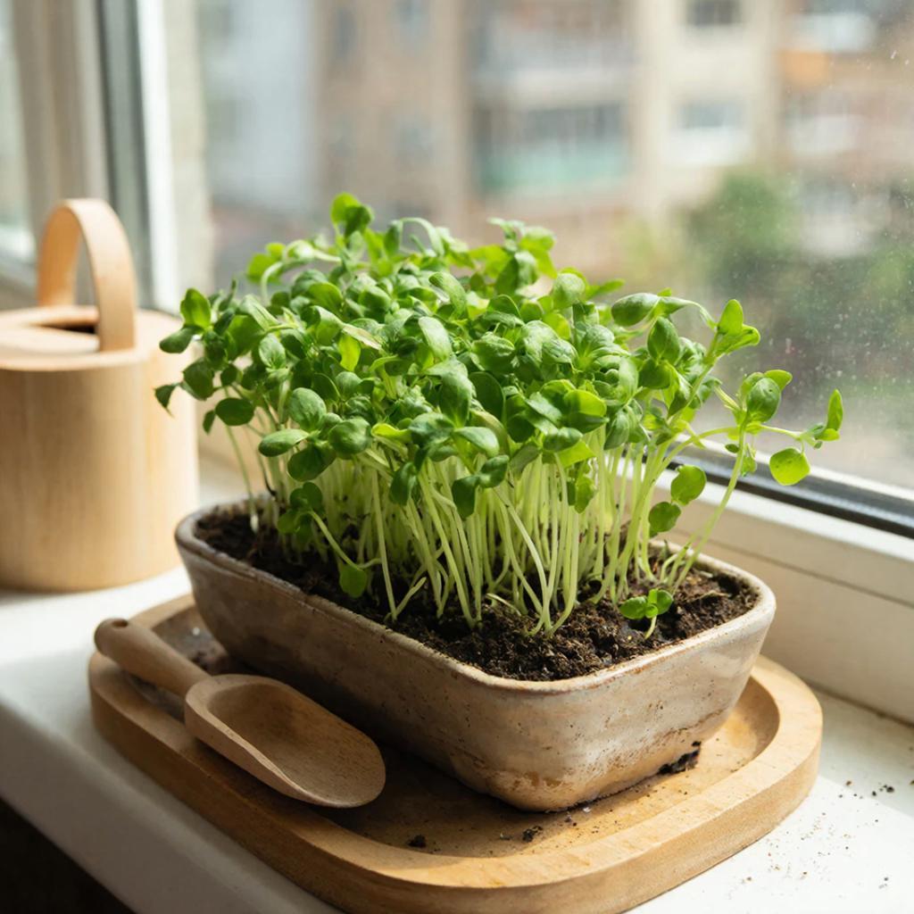 Самые быстрые культуры для получения зелени – редис, подсолнечник и горох, универсальные – брокколи, кресс-салат и горчица, яркие – свекла и амарант. Важно не переращивать, чтобы зелень не потеряла свои вкусовые и питательные качества, и использовать сразу после срезки.