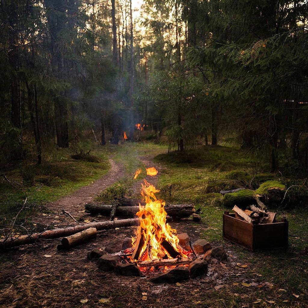 Золотое правило номер один — никогда нельзя оставлять костер без присмотра! Приготовленное про запас топливо держите метрах в трех-пяти от горящего костра. Не разводите очень высокий костер, если того не требует какая-либо особая необходимость (сигнальный костер, например). Следите за тем, чтобы костер давал как можно меньше искр, особенно в ветреную погоду. Во время разведения огня при наличии ветра учитывайте его силу и направление, так как улетевшие искры могут вызвать возгорание травы или листьев деревьев. Старайтесь не использовать в виде топлива ветки с сухой листвой (горит, как порох), потому что от костра будут разлетаться не просто искры, а целые тлеющие листья. Запаситесь водой, если поблизости есть водоем, а у вас есть подходящая емкость.